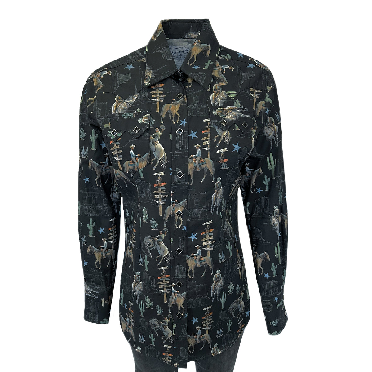 Women’s Black Cactus & Cowboys Print Long Sleev...