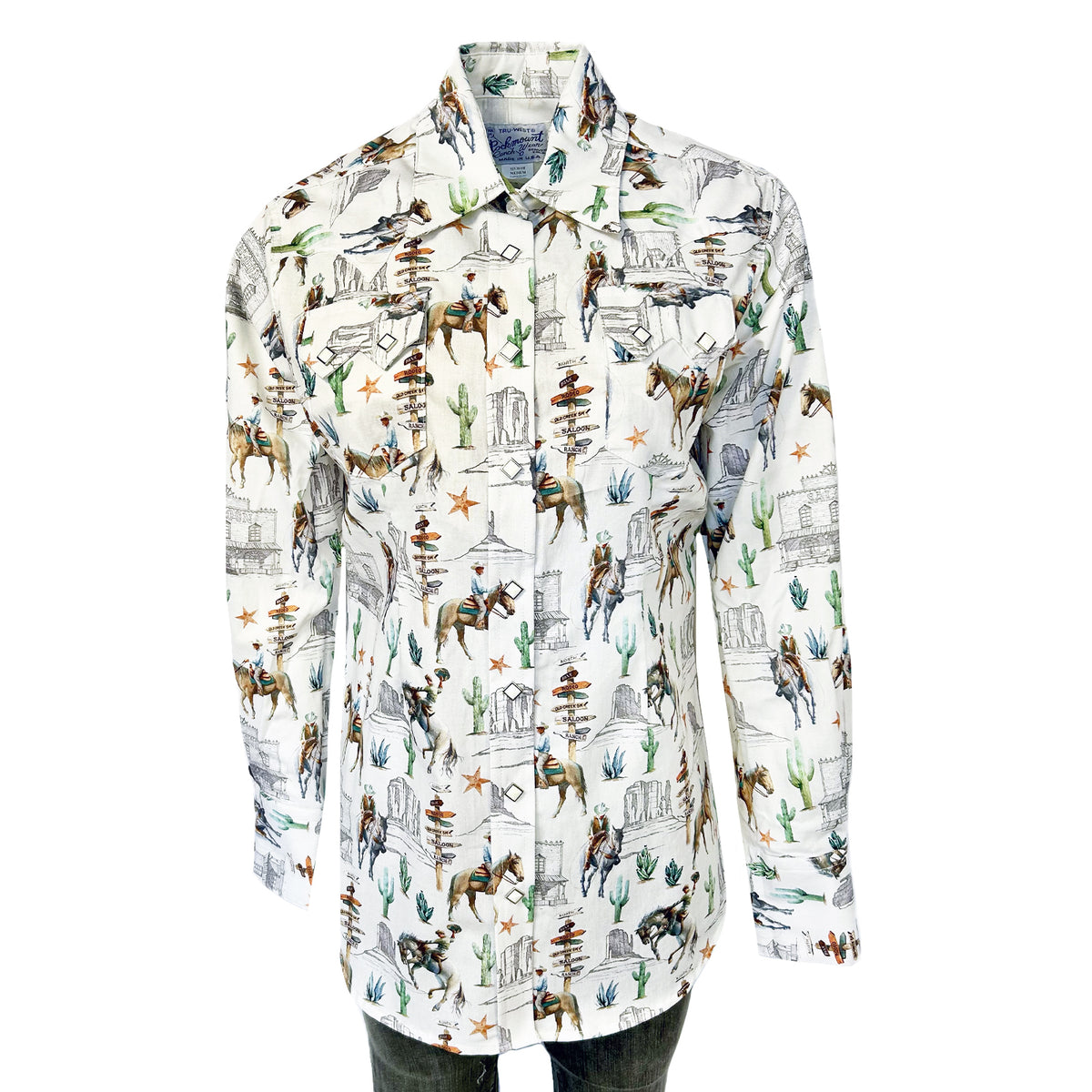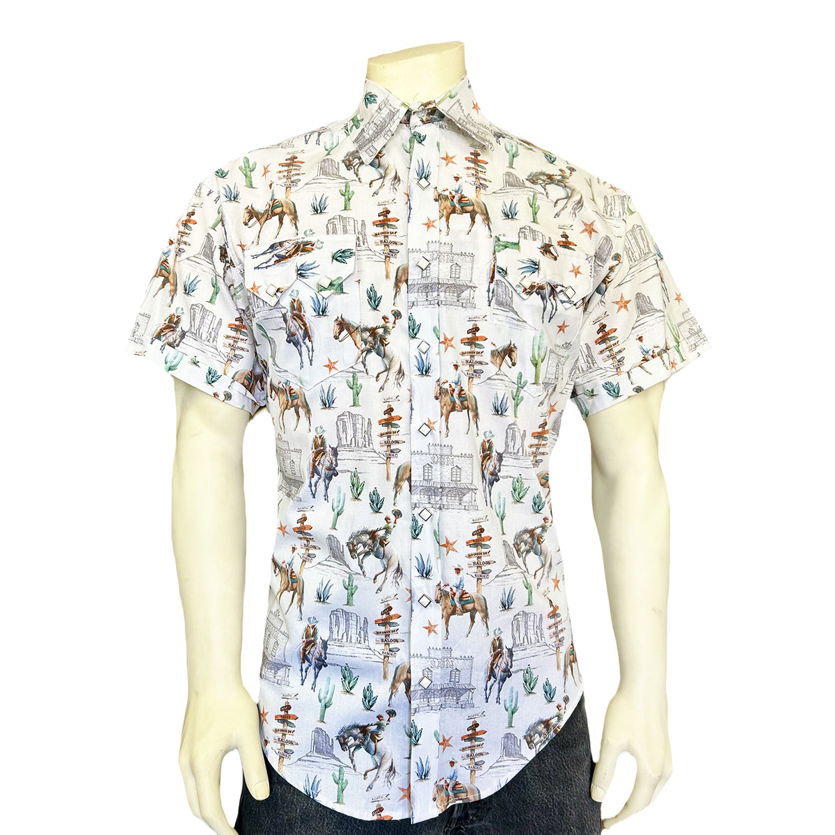 Men’s White Cactus & Cowboys Print Short Sleeve...