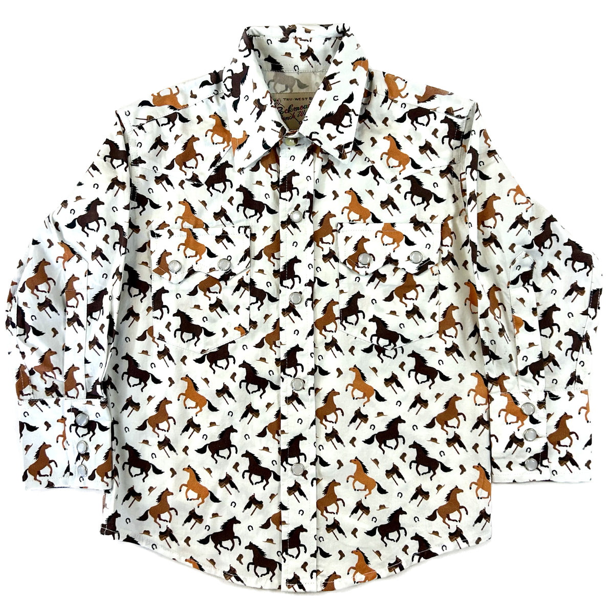 Our generations of designing Western prints show in this new print to our collection. Rockmount is all about the special design twists which add to the artistry of the shirt. Our classic print designs stay in style. The premium combed cotton is soft and comfortable, a deeply dyed print. It features our signature “Sawtooth” pocket, round snaps, relax fit, import.