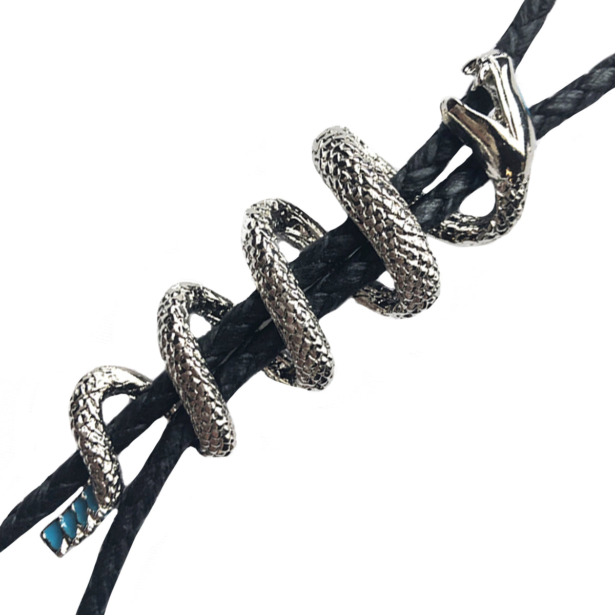 Unique and artistic tri-color rattlesnake bolo tie to complete the Western look. Rockmount Ranch Wear's founder Papa Jack was the first to commercialize bolo ties.