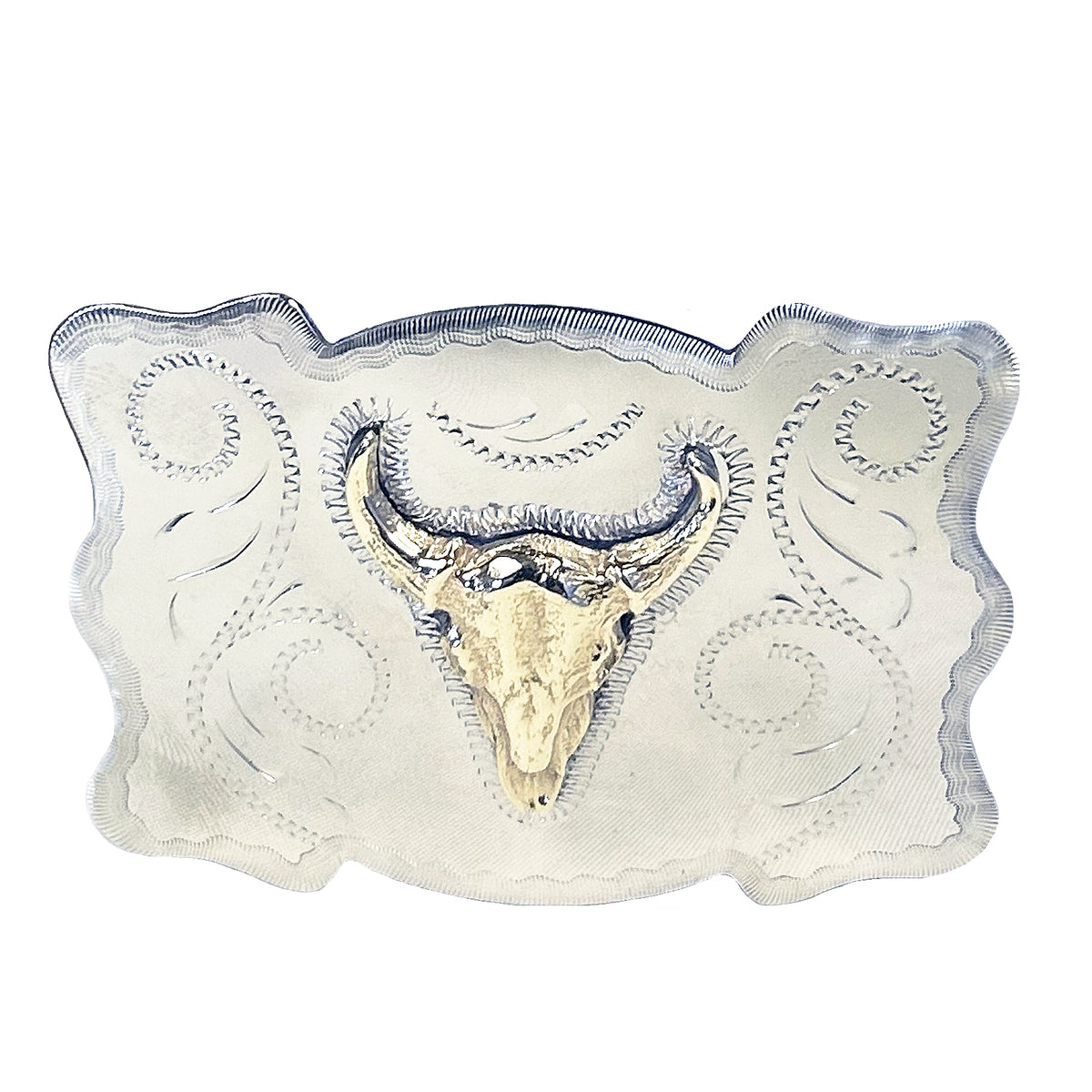 Steer Skull & Feathers Pewter Western Belt Buckle
