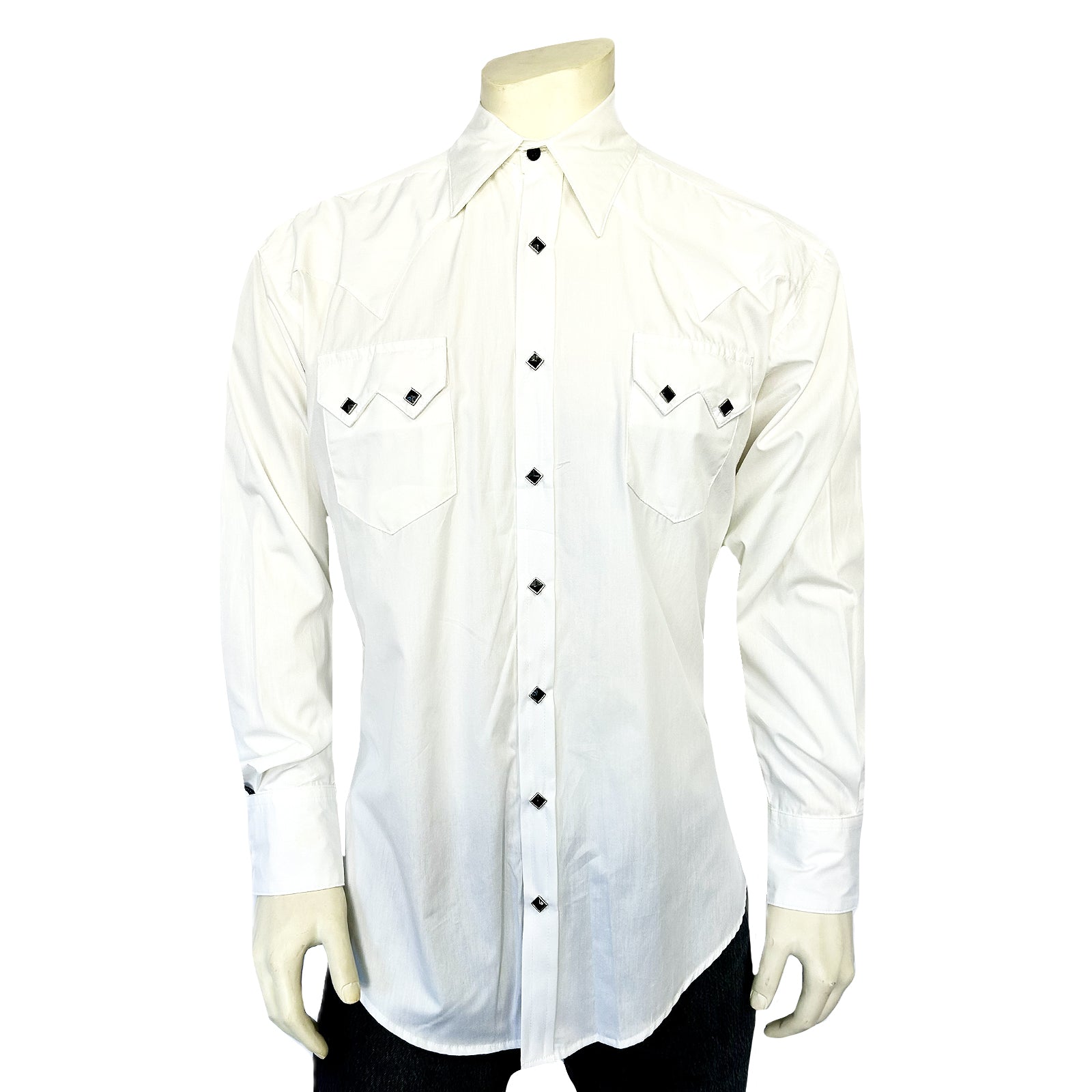 Men's Classic Pima Cotton Solid White Western Shirt with White Snaps