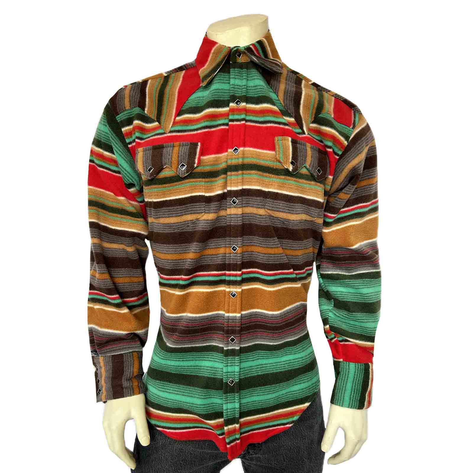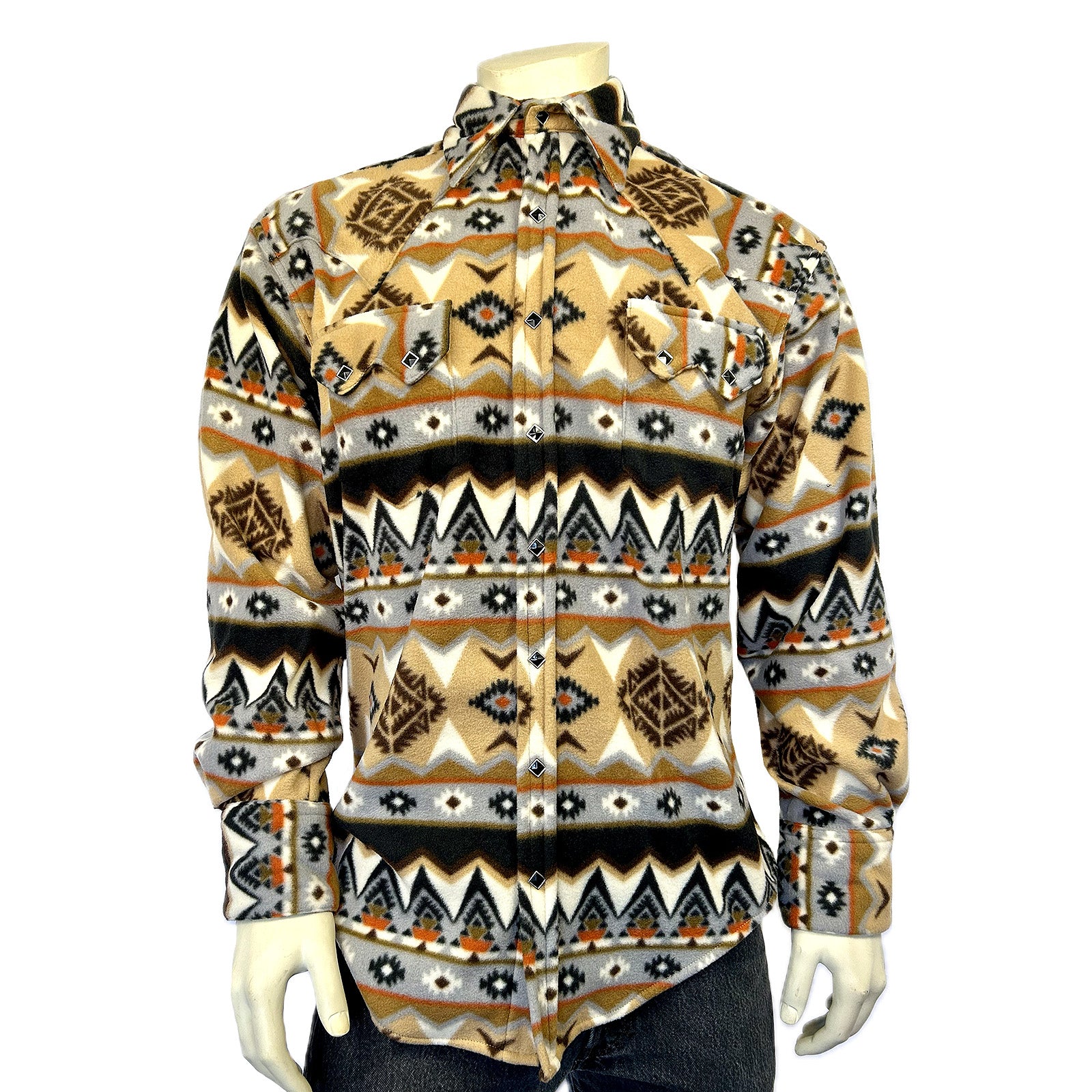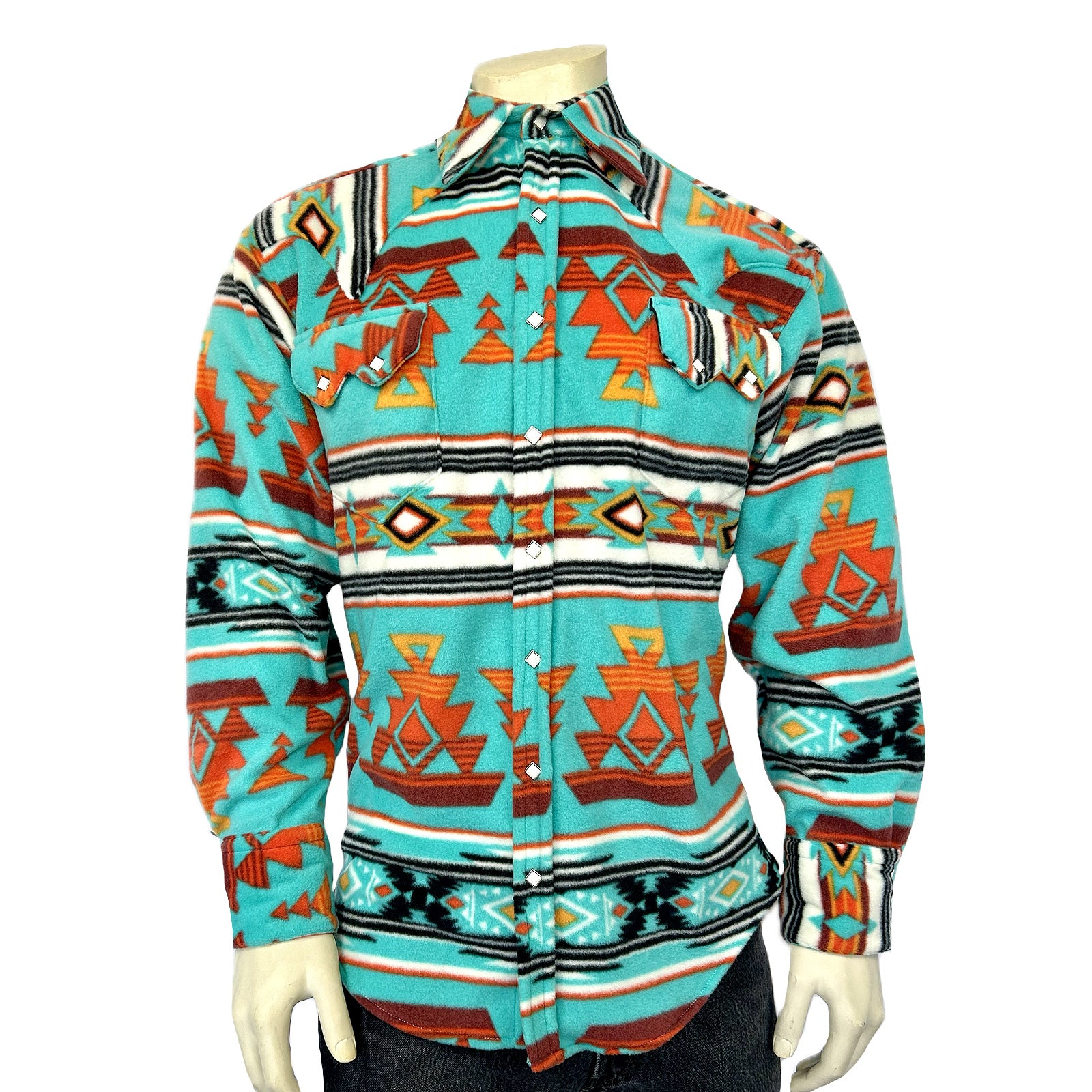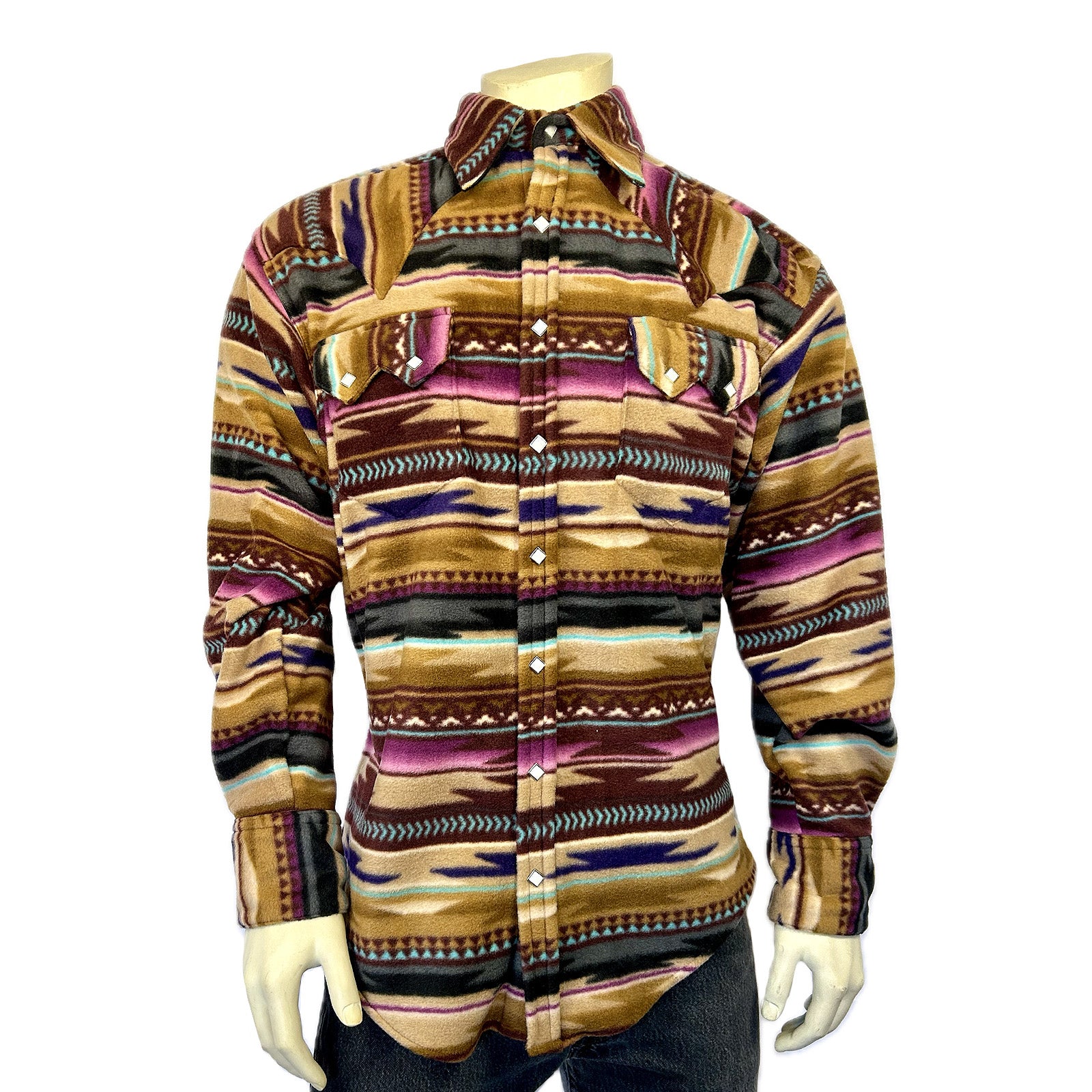 Rockmount's fleece shirts are inspired by Native American design, richly dyed and soft as chamois. When we first introduced our fleece collection it was intended to be soft and toasty for cold winter days, but Rockmount's fleece shirts have gained traction year-round. They are perfect for cool summer nights -- sitting by the campfire or walking along the beach. Wear it as a shirt or a jacket. Features signature Rockmount Sawtooth pockets and Diamond snaps. Made in USA. Relaxed fit.