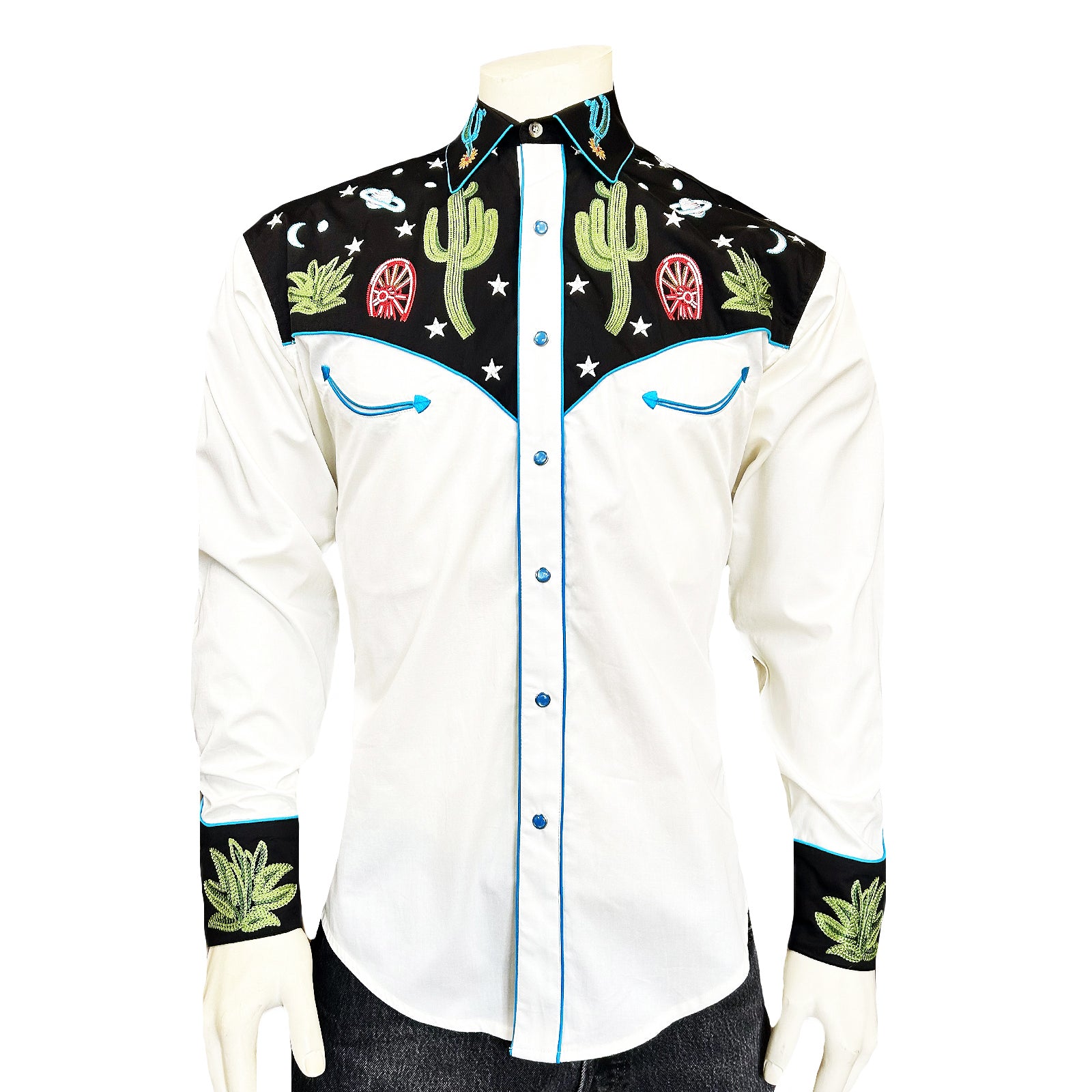 This new design combines Roy Rogers & Jean Luc Picard -- BOLDLY GO WHERE NO MAN HAS GONE BEFORE! Be the first on your planet wearing this cool new shirt. Fine Western design is all about the details. Our embroidery is extra special chain stitch on front and back, collar and cuffs -- a true art form. This hand technique has better texture and finish than commonly found computerized satin stitch embroidery.