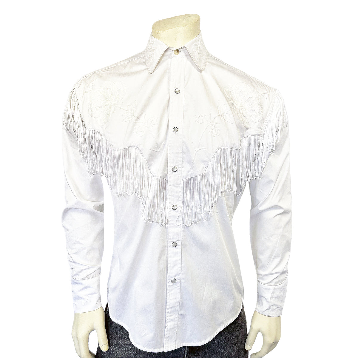 Men's Vintage White Fringe Embroidered Western ...