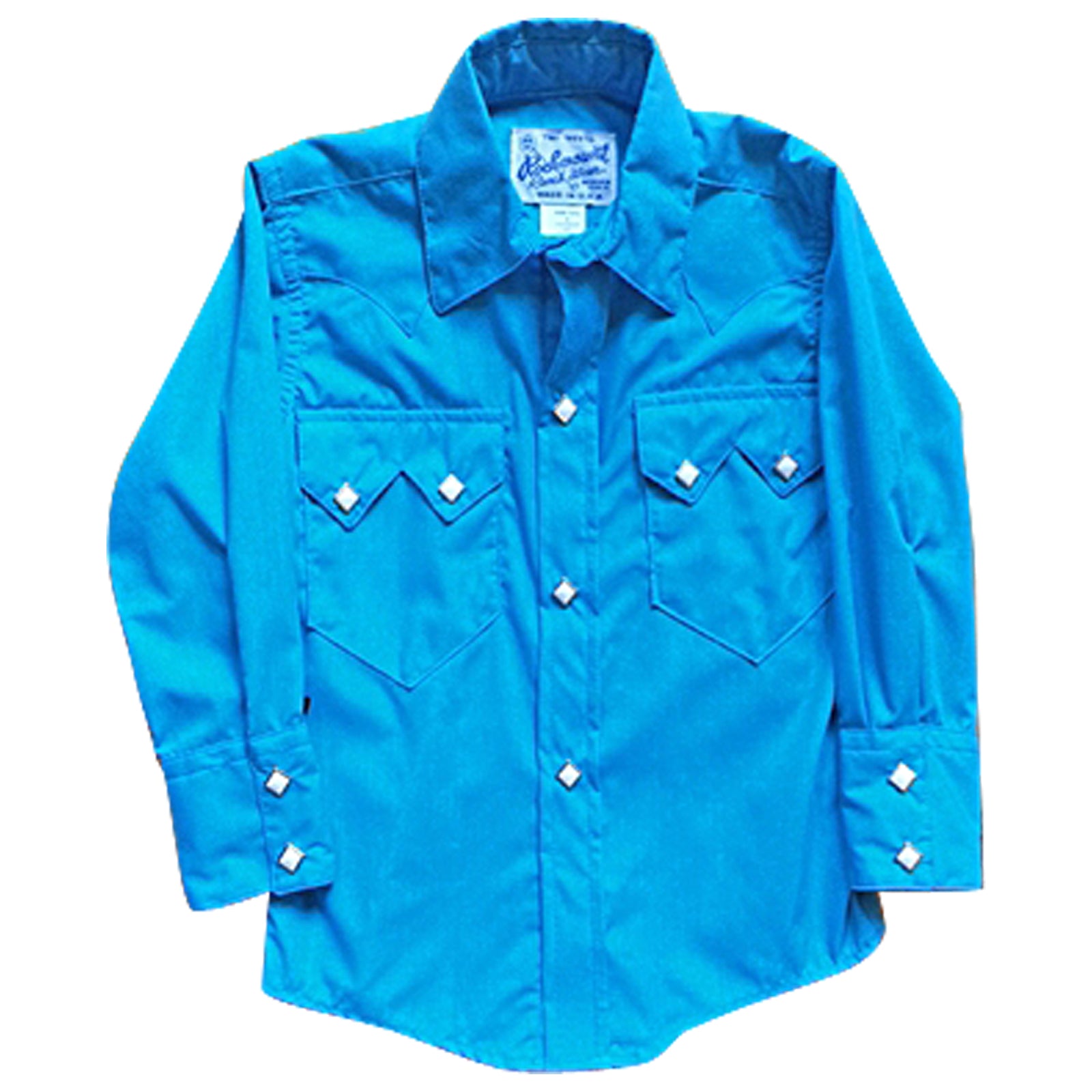 Rockmount's solid kid's companion shirts, in traditional slim fit. The longest continuously produced western shirt in the world, this model features Sawtooth pockets & Diamond snaps. Children's have same rugged construction as adults to last through the hand-me-downs. Made in USA. Soft 65/35 cotton blend.