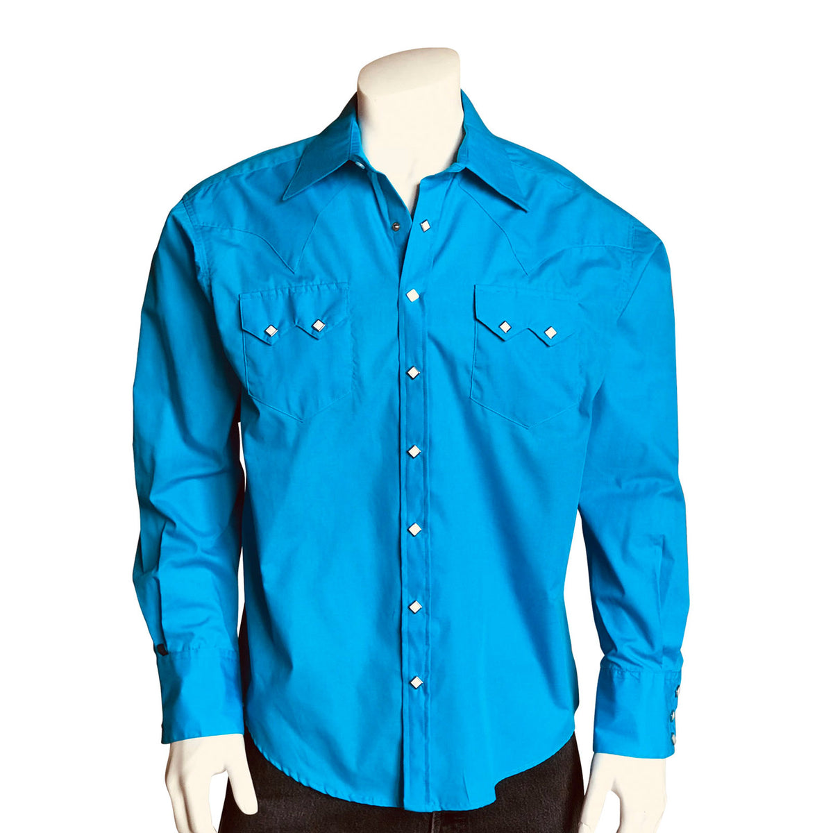 Men's Slim Fit Turquoise Cotton Blend Western S...