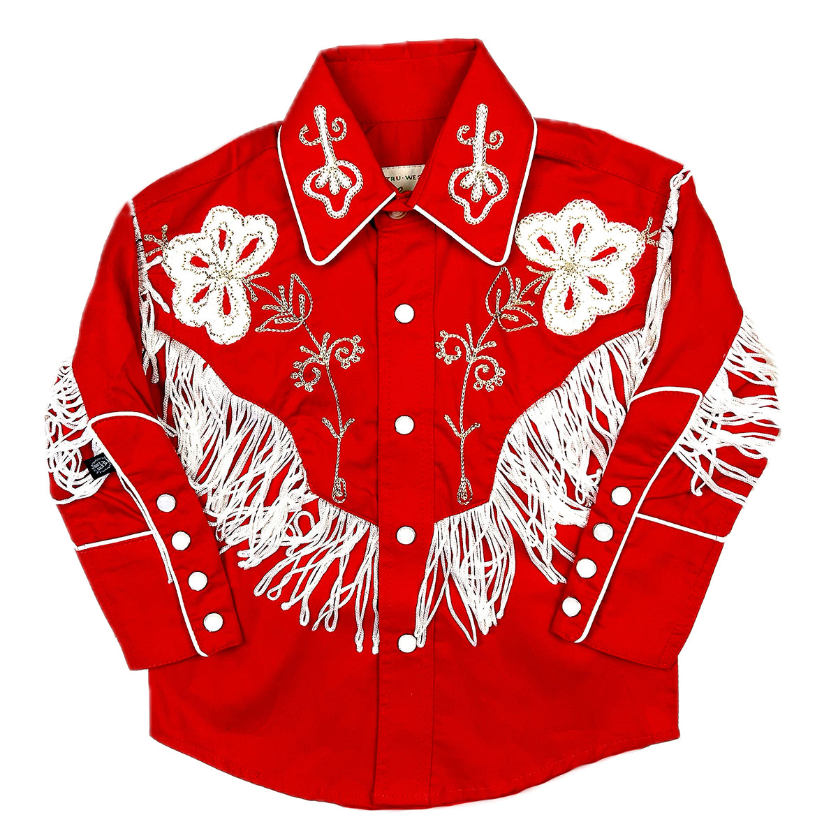 Kid's Vintage Red Embroidered Fringe Western Shirt