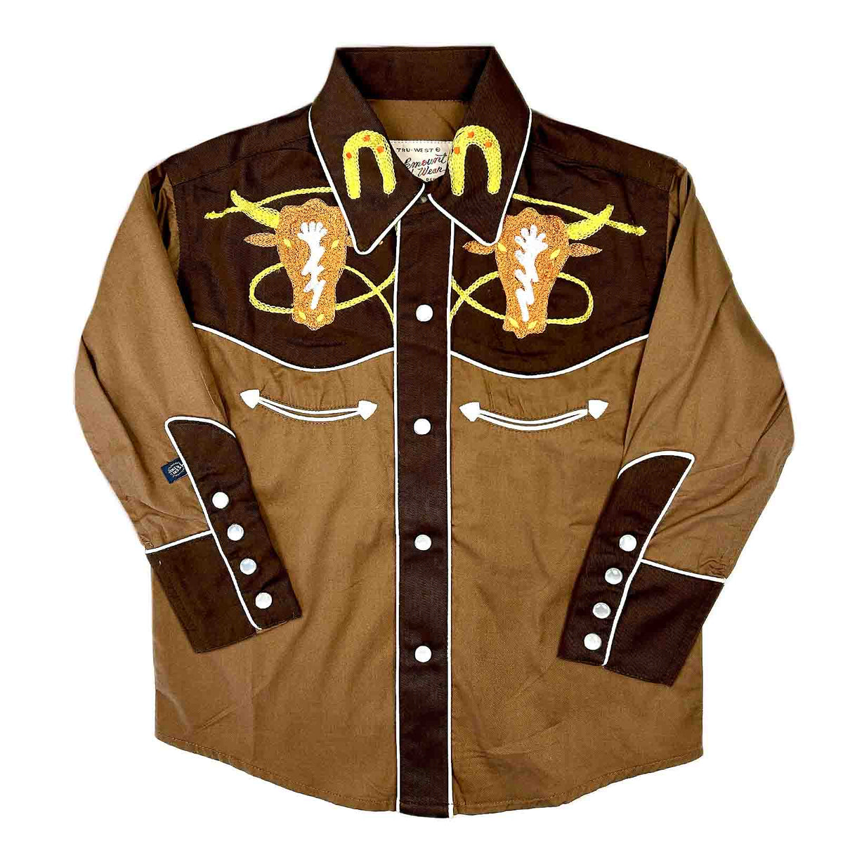 Kid's Embroidered 2-Tone Steer Western Shirt in...