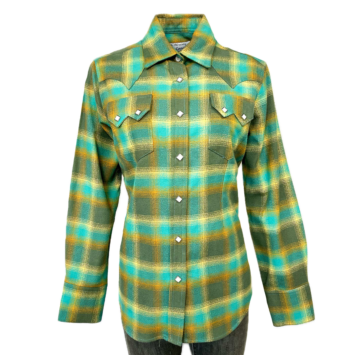 Men's Plush Flannel Green & Turquoise Plaid Western Shirt