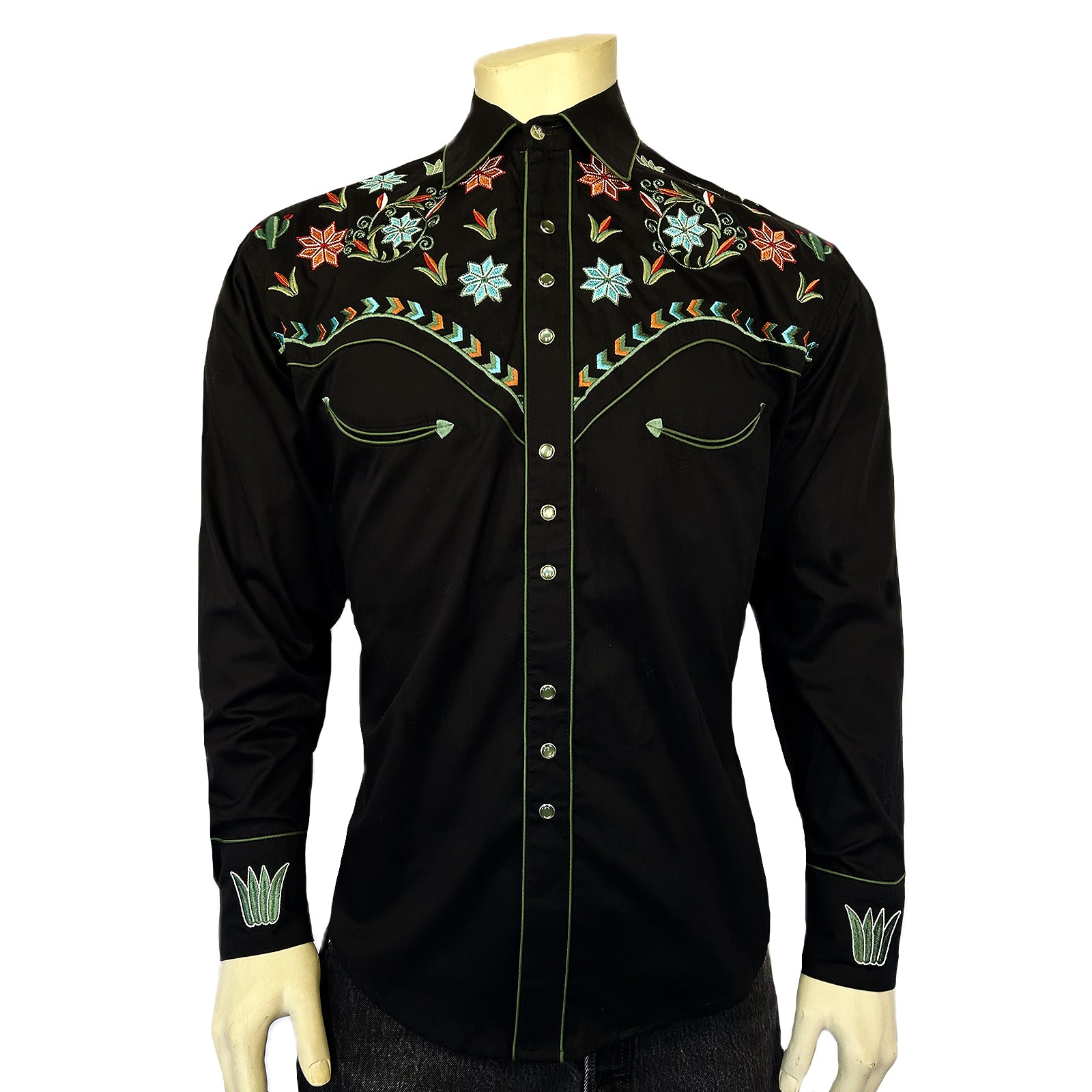 Men’s Ivory Agave Cactus Floral Embroidered Western Shirt