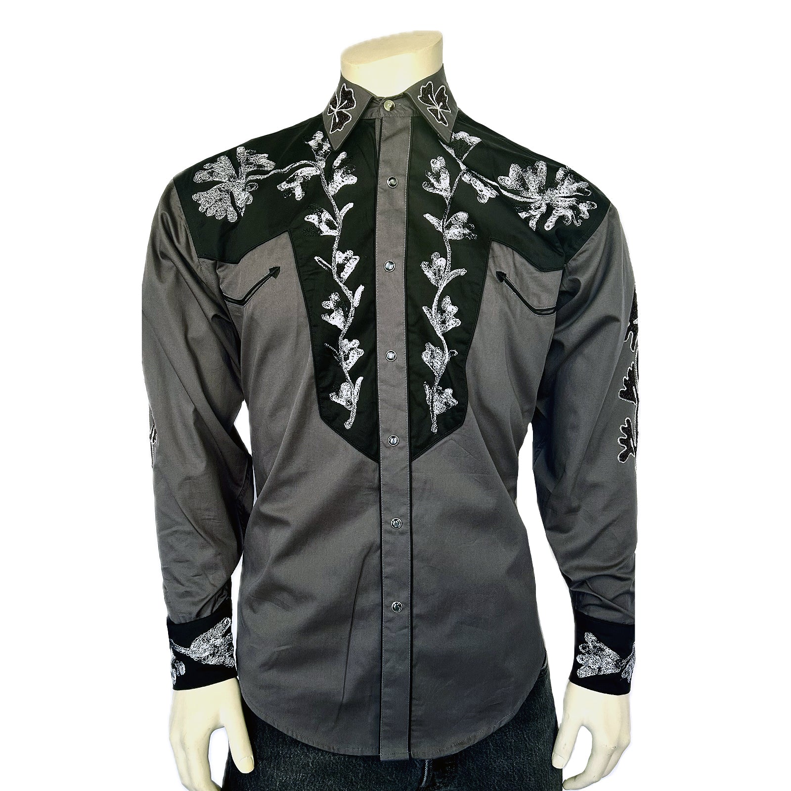 This wonderful vintage western shirt design is our popular 2-tone model. Its inspired by our 1940s original. It features genuine hand chenille embroidery, accent piping and Smile pockets with embroidered arrows. Fabric is year around weight 100% cotton gabardine twill. Imported.