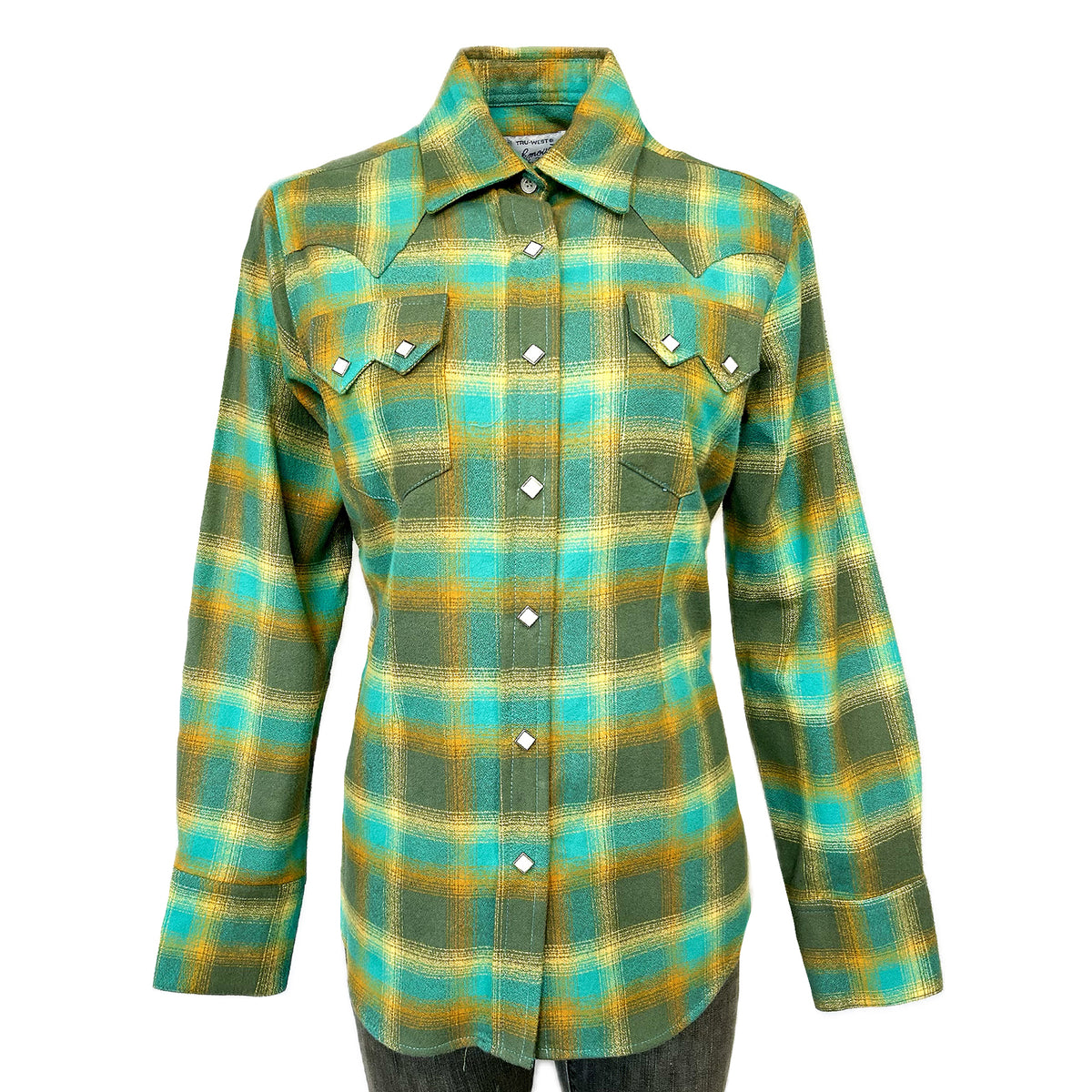 Women's Plush Green & Turquoise Plaid Flannel Western Shirt