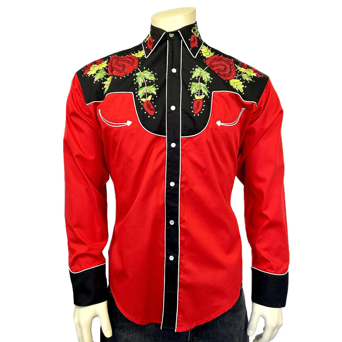 Women's Vintage 2-Tone Red Roses Embroidered Western Shirt