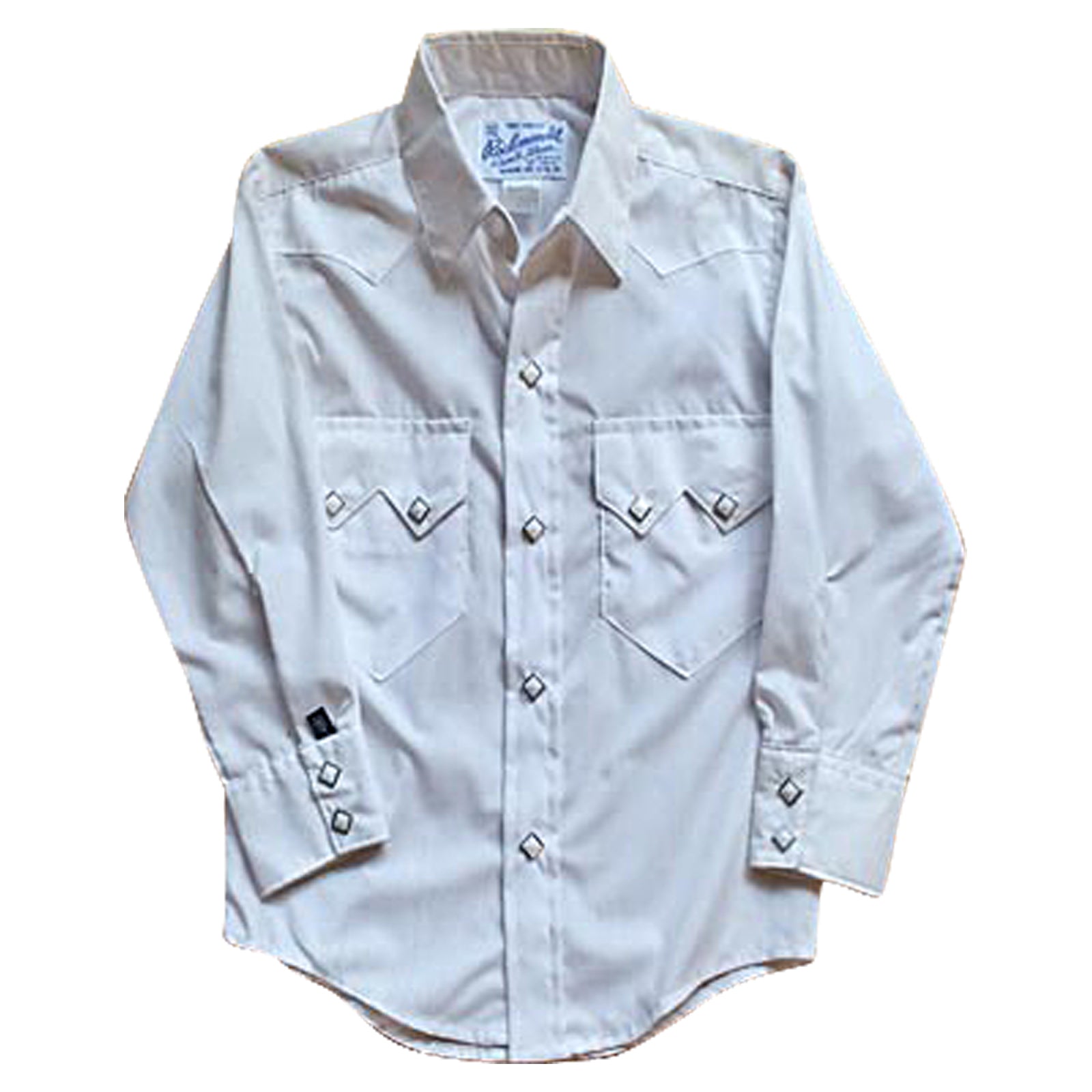 Rockmount's solid kid's companion shirts, in traditional slim fit. The longest continuously produced western shirt in the world, this model features Sawtooth pockets & Diamond snaps. Children's have same rugged construction as adults to last through the hand-me-downs. Made in USA. Soft 65/35 cotton blend.