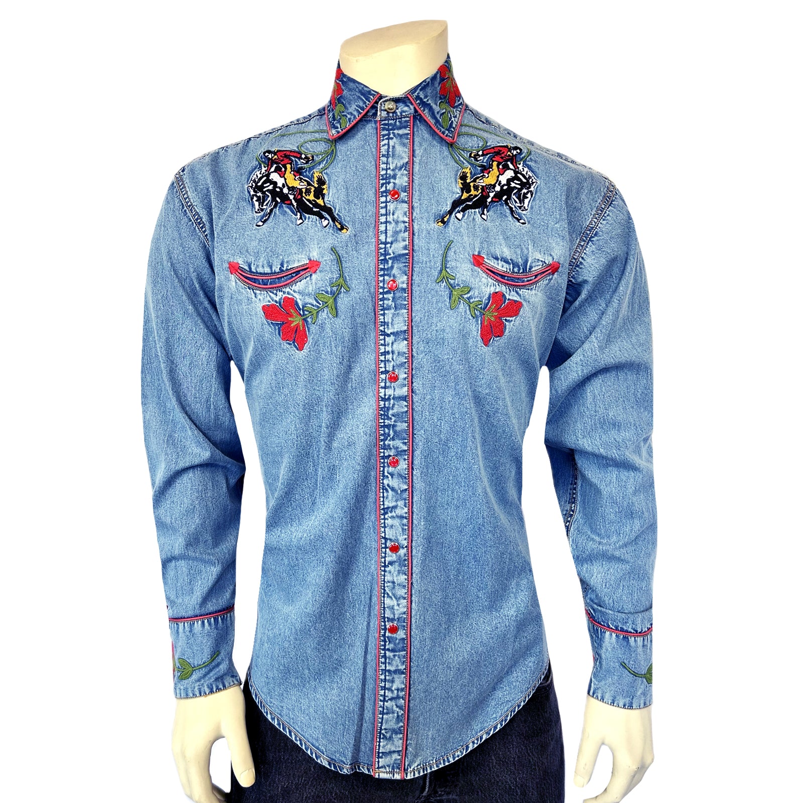 Embroidery is a special treatment that helped popularize Western fashion from the very beginning. Rockmount maintains the art of the shirt maker like no other brand, a four generation tradition of the finest craftsmanship in both shirt construction and embroidery as an art form. This ornate embroidery is extremely high quality with fine detailing and special techniques on front, back and cuffs.