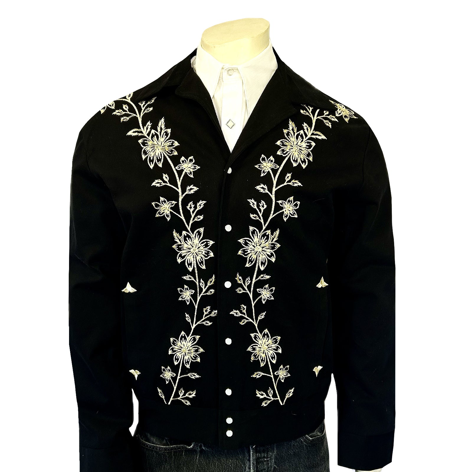 Men's Vintage Western Denim Bolero Jacket with White Rope Embroidery