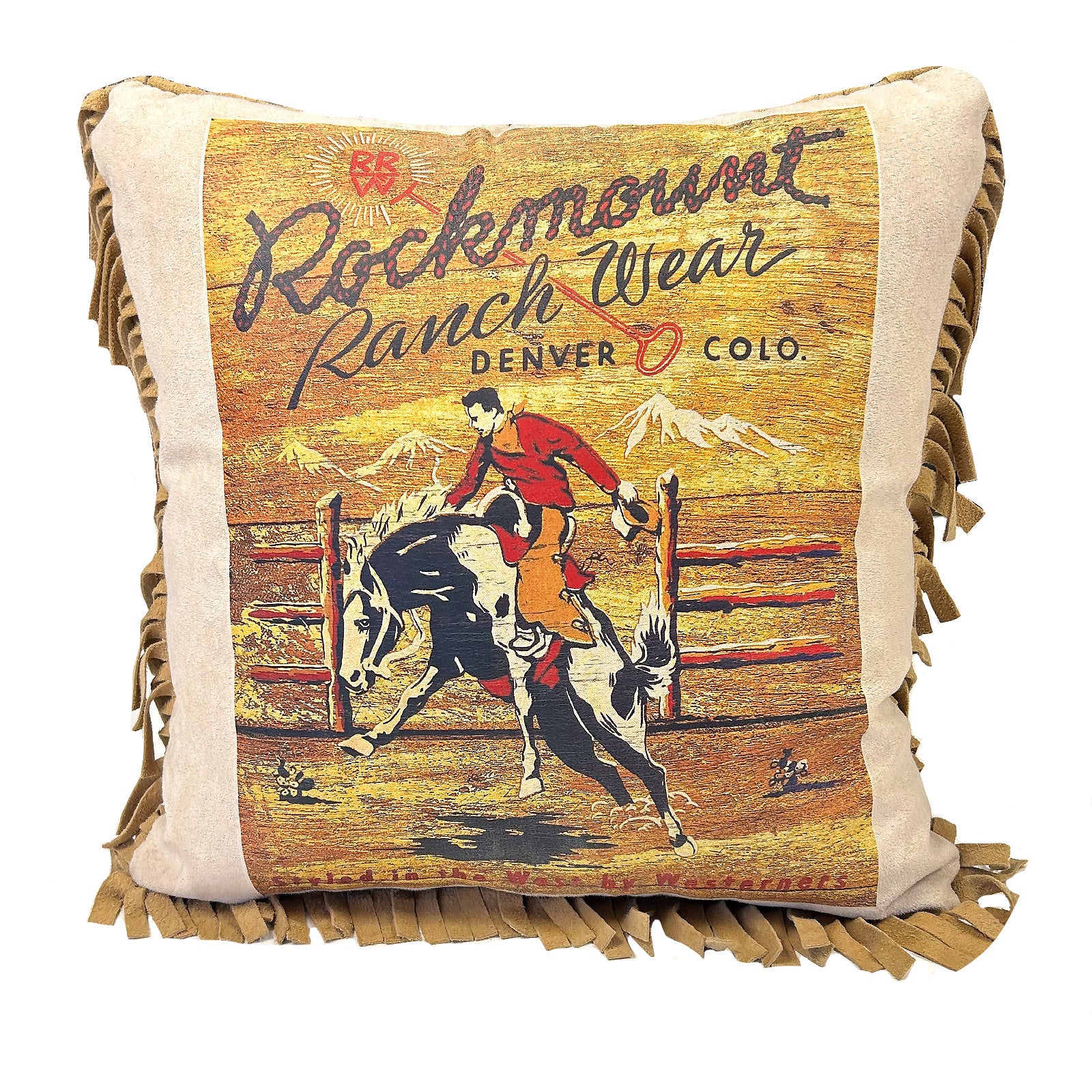 Vintage 100% genuine leather western pillow and fringe with Rockmount's signature artwork.