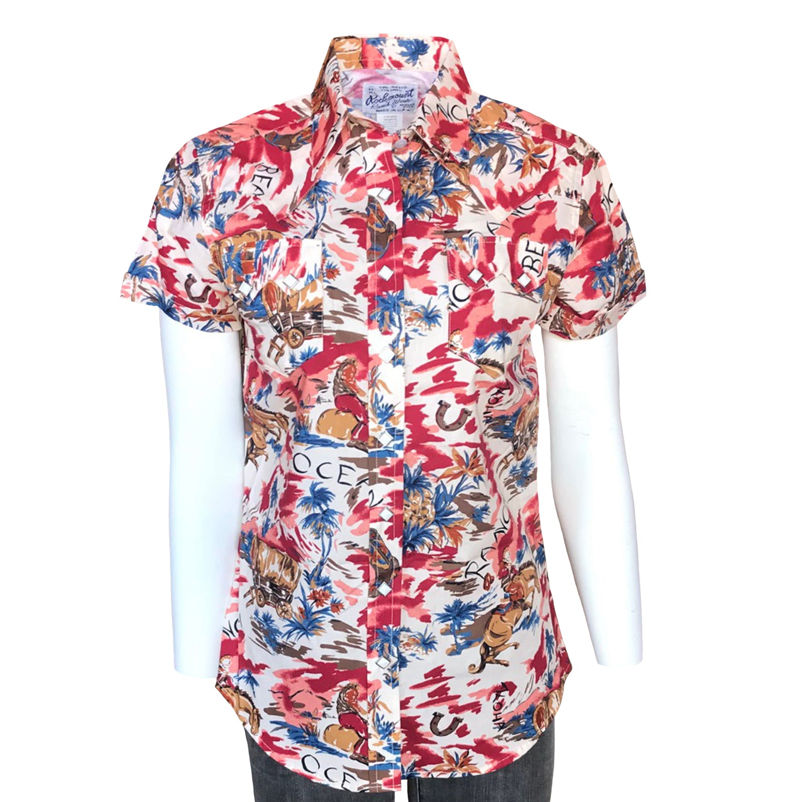 Women’s Blue Western Hawaiian Print Short Sleeve Shirt
