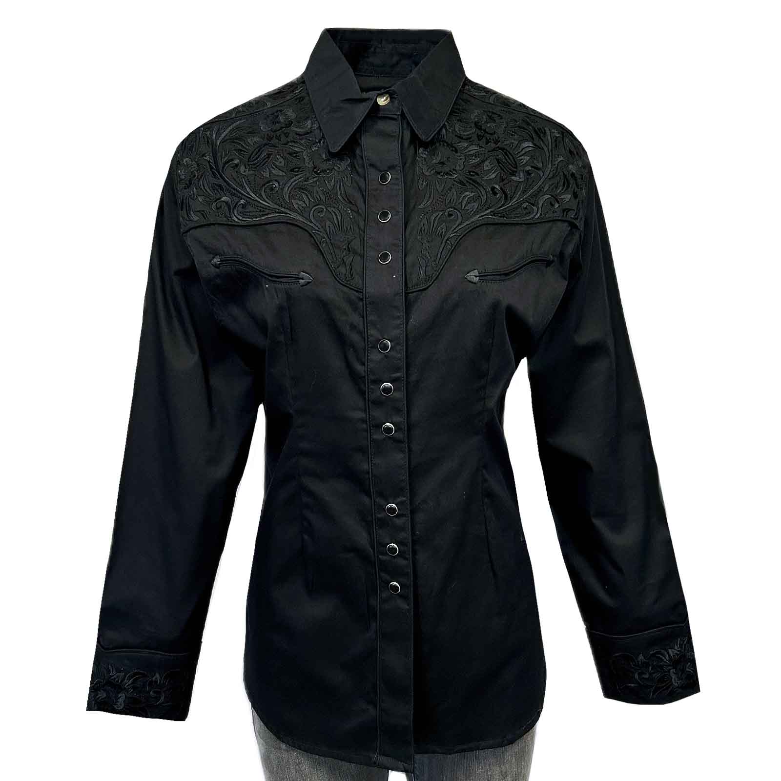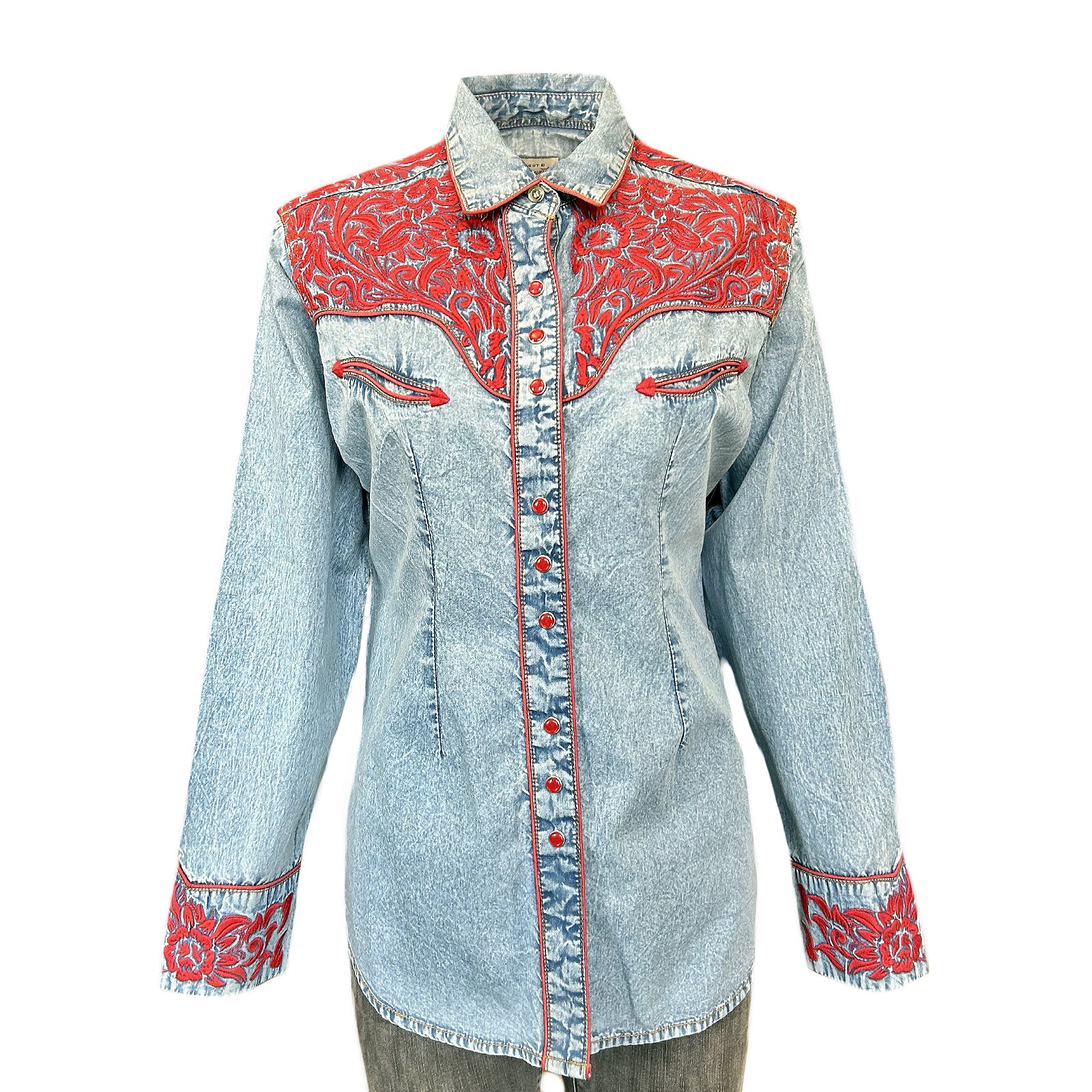 Women's Vintage Denim & Blue Tooling Embroidered Western Shirt