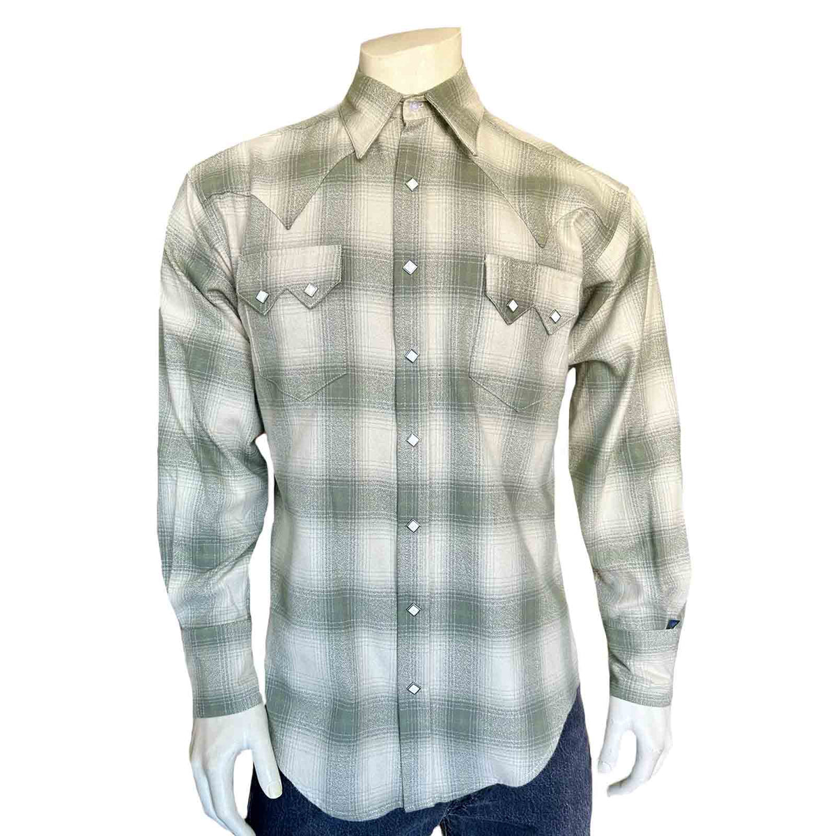 Rockmount's green shadow plaid flannel shirt is is a premium heavy weight with velvety soft hand, the finest on the market. These 100% cotton yarn dyed shirts have been so popular --- selling year-round --- that we expanded with many new patterns and colors. Can be worn as shirt or jacket. Features signature Sawtooth pockets and Diamond snaps. Tapered fit with darts. Made in USA. Relaxed fit.