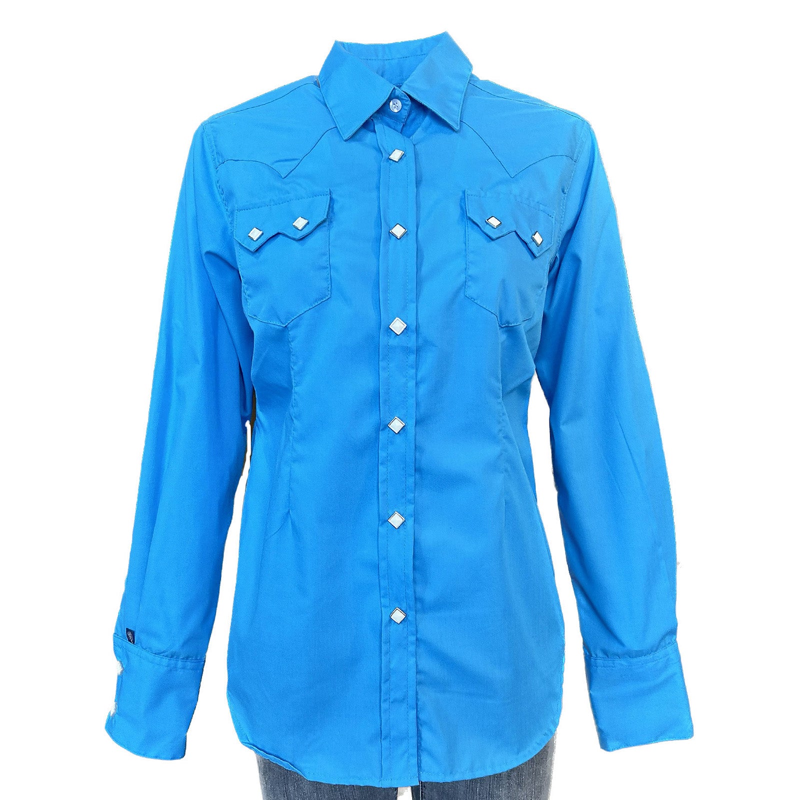 The longest running shirt design in America, in white. Cotton blend long sleeve shirt with Sawtooth pockets and Diamond snaps. Fit is tapered with darts.