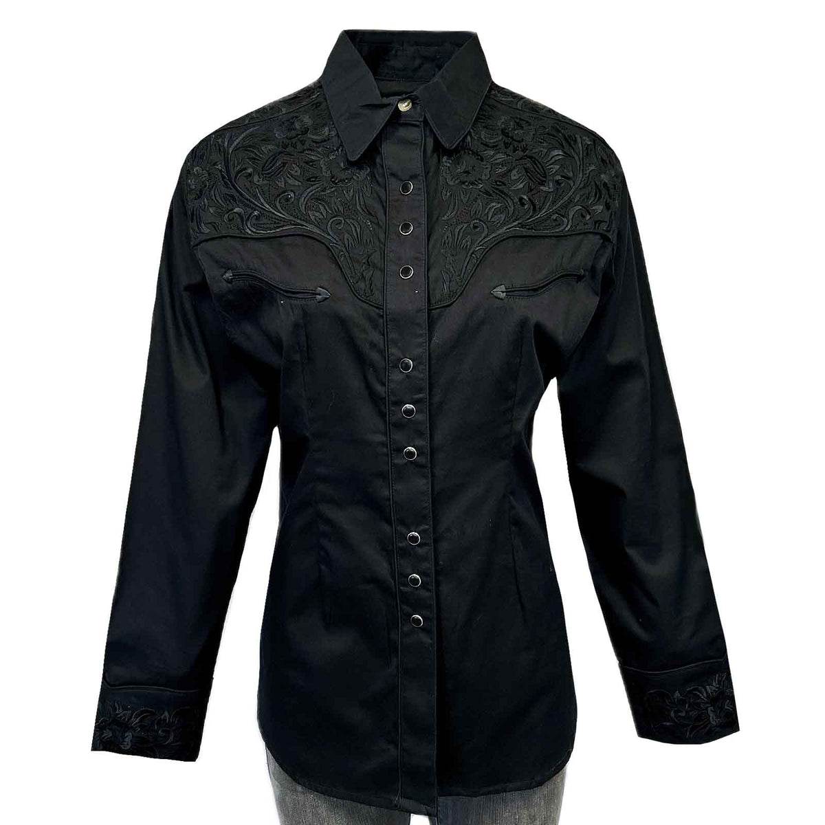 Men's Vintage Black-on-Black Tooling Embroidered Western Shirt