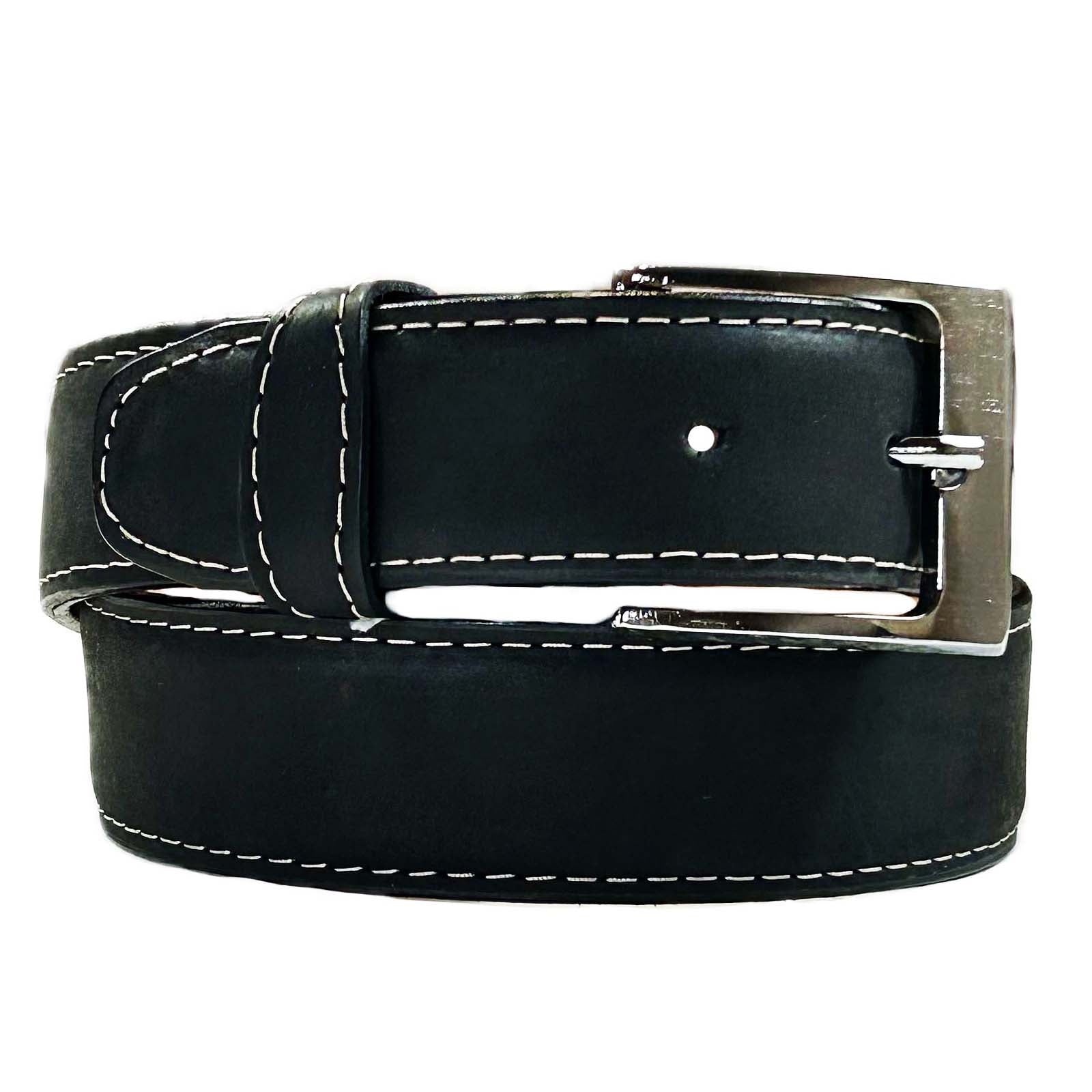 Genuine cowhide sanded nubuck full grain leather with edge stitch. Rockmount western belts are made from the finest cowhide and saddle leather. Our western belts are distinguished by special treatments including edge stitching and border designs. Like all fine leather goods, Rockmount belts are made to last. Imported.